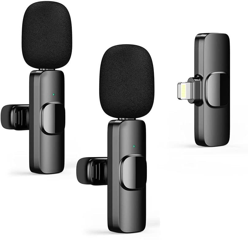 ميكروفون لاسلكي لافالير بجهاز الإرسال/الاستقبال مع واجهة لايتنينج يتوافق مع ايفون 6/7 و7 بلس و8 و8 بلس وX وXR وXS وXS ماكس و11 و11 برو و11 برو ماكس و12/ 12 برو وايباد 2/3/4 وايباد اير وايباد برو